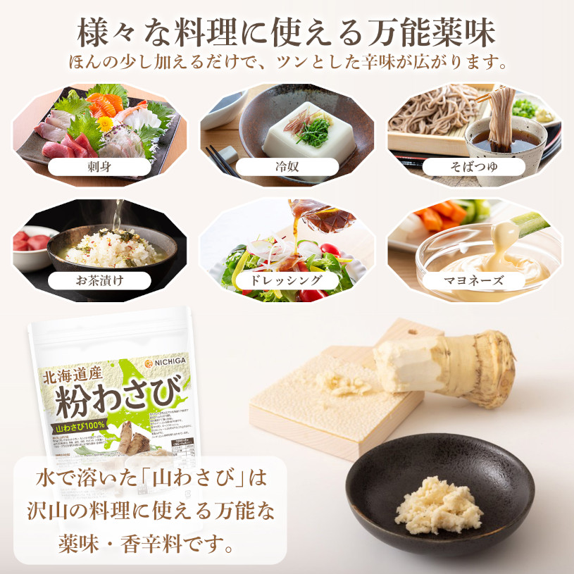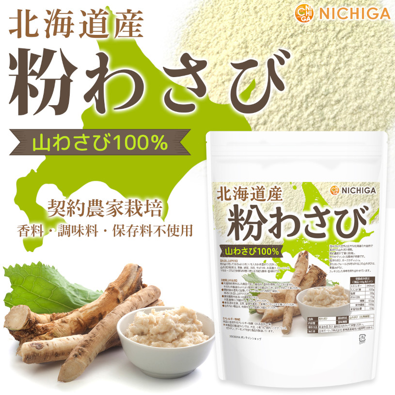 北海道産 粉わさび粉末 100g 【送料無料】【メール便で郵便ポストにお届け】【代引不可】【時間指定不可】山わさび100% [契約農家栽培] 西洋わさび ホースラディッシュ レフォール [04] NICHIGA(ニチガ)