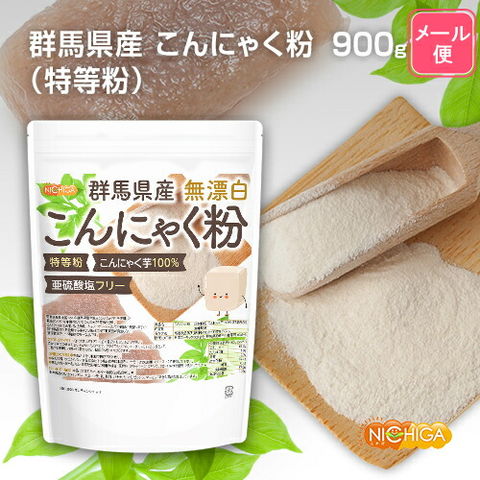 群馬県産 無漂白 こんにゃく粉(特等粉) 900g 【送料無料】【メール便で郵便ポストにお届け】【代引不可】【時間指定不可】 レシピ付き 亜硫酸塩フリー こんにゃく芋100% [01] NICHIGA(ニチガ)