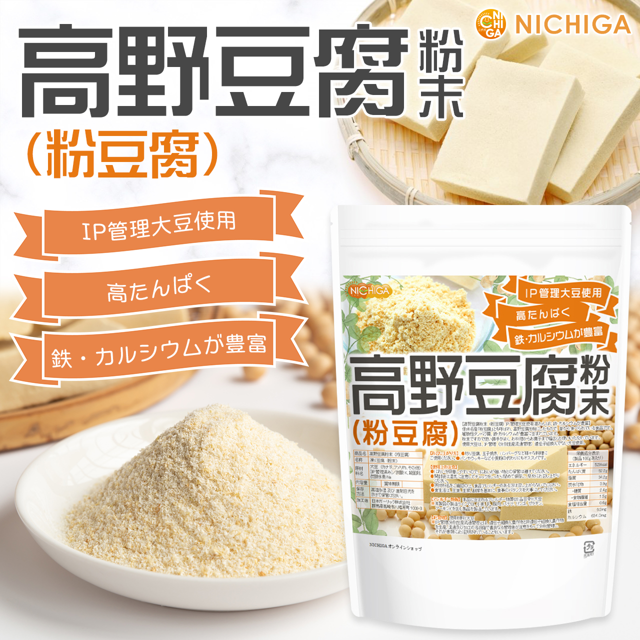 高野豆腐 粉末(粉豆腐) 500g 【送料無料】【メール便で郵便ポストにお届け】【代引不可】【時間指定不可】 高たんぱく質 鉄・カルシウムが豊富 IP管理 大豆使用 [05] NICHIGA(ニチガ)