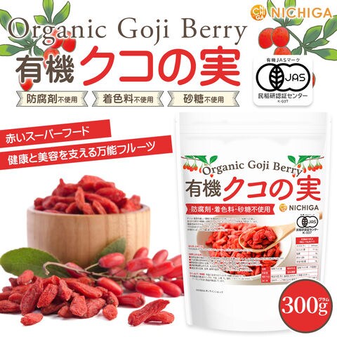 有機 クコの実 300g 【送料無料】【メールで郵便ポストにお届け】【代引不可】【時間指定不可】防腐剤・着色料・砂糖不使用 [Organic Goji Berry] 残留農薬検査実施済 [05] NICHIGA(ニチガ)