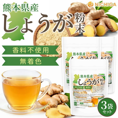 熊本県産しょうが粉末 100g×3袋 【送料無料】【メールで郵便ポストにお届け】【代引不可】【時間指定不可】着色料香料不使用 残留農薬試験実施済み ジンジャー [06] NICHIGA(ニチガ)