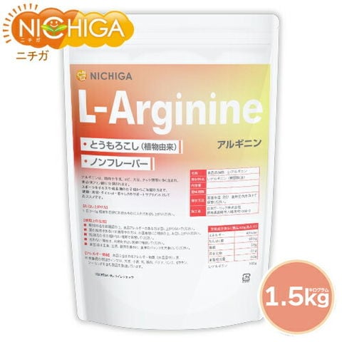 L-アルギニン(L-Arginine)植物由来 1.5kg 【送料無料!(沖縄を除く)】 アミノ酸 ノンフレーバー NICHIGA(ニチガ) TK0