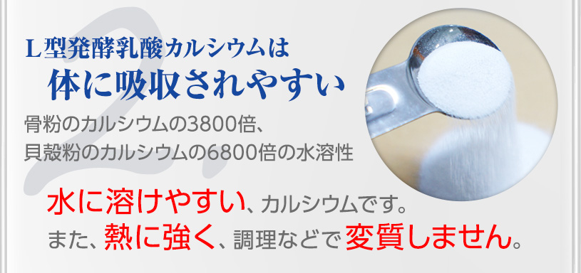 サトウキビやとうもろこしから取り出した糖分に乳酸菌の働きによる発酵法で作られています。お味噌や醤油が大豆を原料に発酵させて作られるのと同じように、植物から作られたカルシウムです。