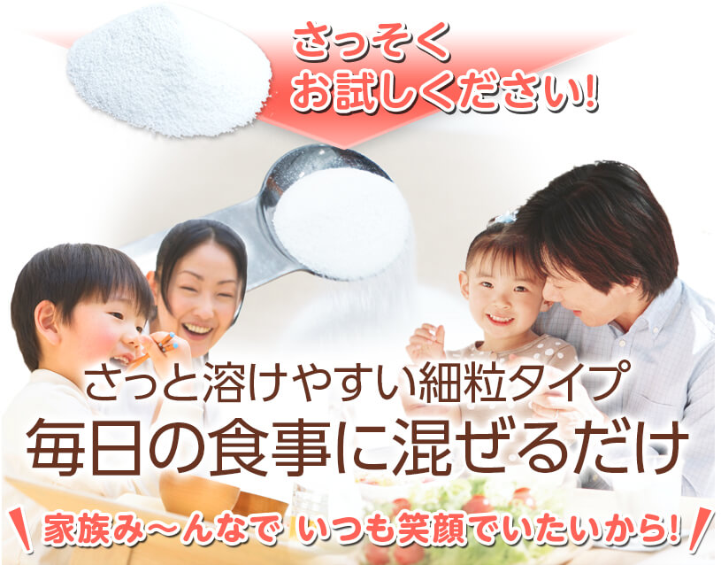 粉立ちを抑え、分散性・水に溶けやすい溶解性に優れた顆粒タイプ、カルシウムの補給にオススメです。