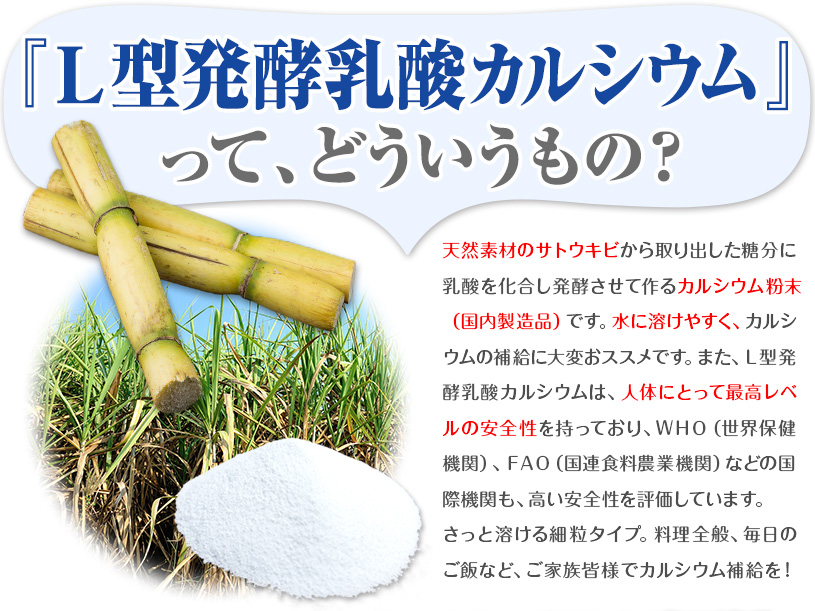 | 原材料名 | L型発酵乳酸カルシウム(国内製造) |