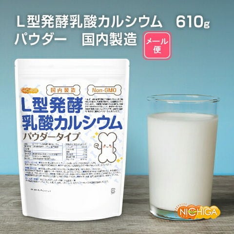 【パウダー】L型発酵乳酸カルシウム (国内製造) 610g 【送料無料】【メール便で郵便ポストにお届け】【代引不可】【時間指定不可】 Non-GMO 甜菜由来 野菜から作られたカルシウム [01] NICHIGA(ニチガ)