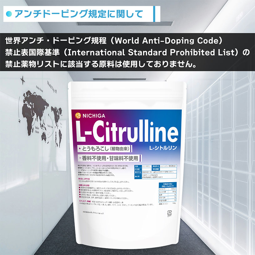 L-シトルリン(L-Citrulline) 610g 【送料無料】【メール便で郵便ポストにお届け】【代引不可】【時間指定不可】 植物由来 アミノ酸 香料不使用、人工甘味料不使用 [01] NICHIGA(ニチガ)