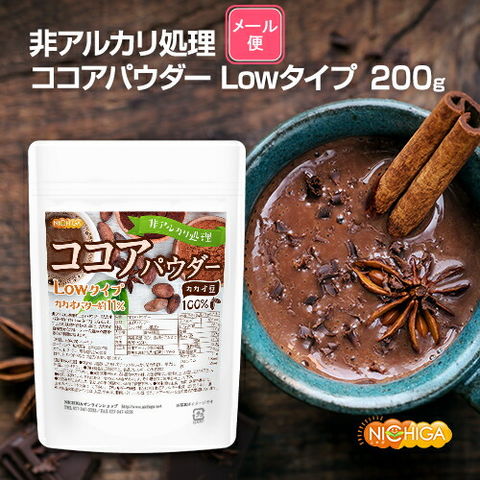 【Lowタイプ】非アルカリ処理 ココアパウダー 200g 【送料無料】【メール便で郵便ポストにお届け】【代引不可】【時間指定不可】 カカオバター約11% カカオ豆100% [01] NICHIGA(ニチガ)
