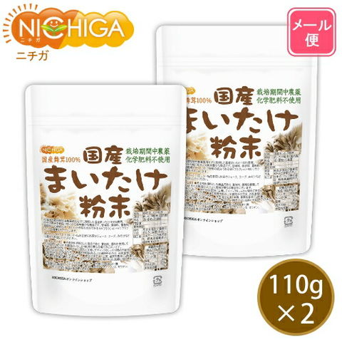 国産まいたけ粉末 110g×2袋 【送料無料】【メール便で郵便ポストにお届け】【代引不可】【時間指定不可】 栽培期間中農薬・化学肥料不使用 北海道産舞茸100% [01] NICHIGA(ニチガ)