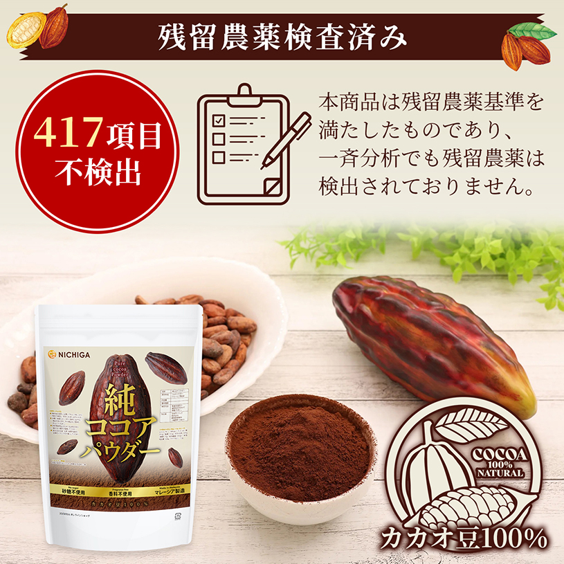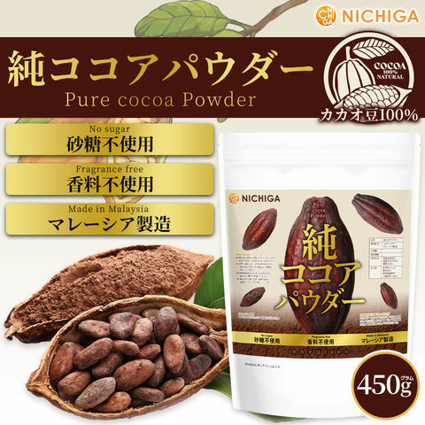 純 ココアパウダー (マレーシア製造) 450g 【送料無料】【メール便で郵便ポストにお届け】【代引不可】【時間指定不可】 Pure Cocoa Powder 無香料 無糖 無着色 保存料不使用 ピュアココア カカオ豆100% [01] NICHIGA(ニチガ)