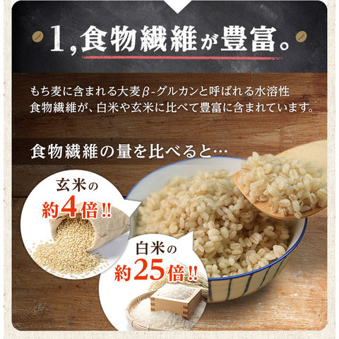 大麦は、β-グルカンという食物繊維が通常大麦の約2倍含まれており、もちもちぷちぷちの食感です。 残留農薬検査も実施済みです。