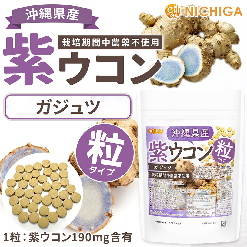 沖縄県産 紫ウコン 粒 150g×3袋 約2250粒 【送料無料】【メール便で郵便ポストにお届け】【代引不可】【時間指定不可】 栽培期間中農薬不使用 ガジュツ ミネラル豊富 約225日分 [01] NICHIGA(ニチガ)