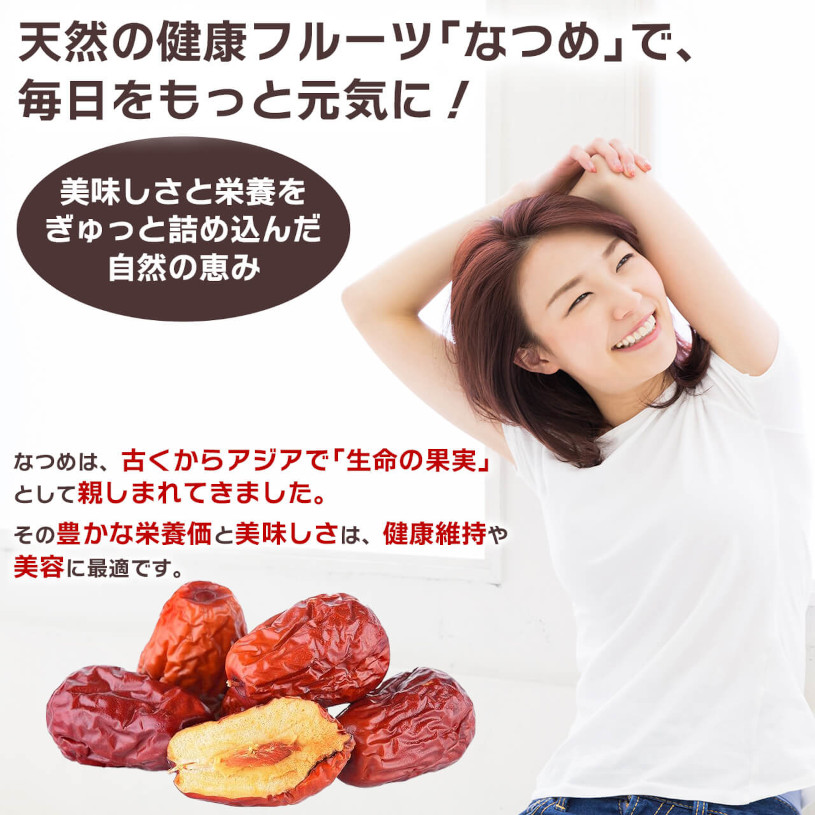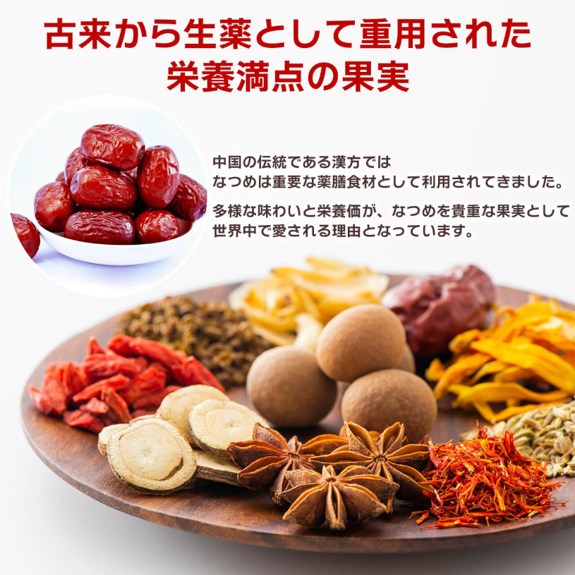 古来から生薬として重用され、楊貴妃も愛食したとされるなつめの栄養を手軽に楽しめます。自然な甘さとサクサクした食感が特徴です。