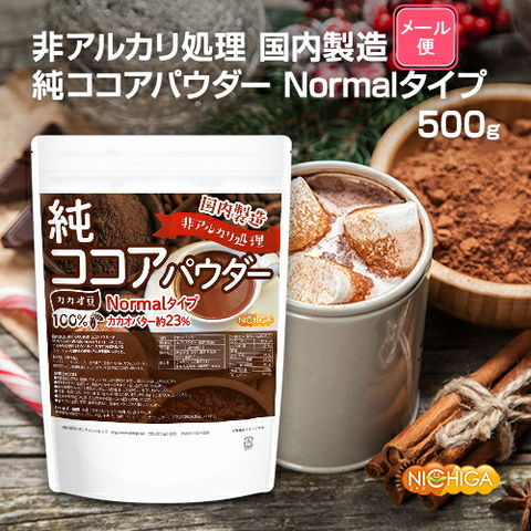 【Normalタイプ】非アルカリ処理 国内製造 純ココアパウダー 500g 【送料無料】【メール便で郵便ポストにお届け】【代引不可】【時間指定不可】 カカオバター約23% カカオ豆100% [05] NICHIGA(ニチガ)
