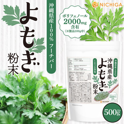 沖縄県産 よもぎ粉末 500g 【送料無料】【メール便で郵便ポストにお届け】【代引不可】【時間指定不可】 ニシヨモギ フーチバー ミネラル・ポリフェノール含有 ノンカフェイン 茶 菓子作りに 国産 香料・着色料・保存料不使用 [01] NICHIGA(ニチガ)