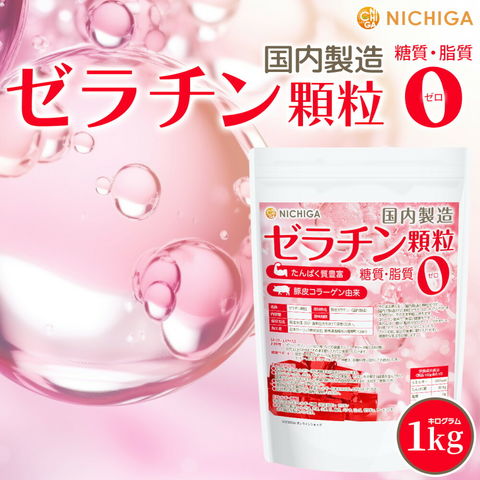 豚皮コラーゲン由来 ゼラチン顆粒 (国内製造) 1kg【送料無料】【沖縄配送不可】 たんぱく質豊富 糖質0・脂質0 美容と健康をサポート NICHIGA(ニチガ) TK0