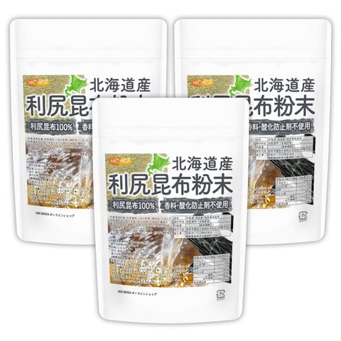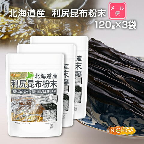 北海道産 利尻昆布粉末 120g×3袋 【送料無料】【メール便で郵便ポストにお届け】【代引不可】【時間指定不可】 利尻昆布100% 香料・酸化防止剤不使用 天然調味料 上品で清澄なだし [06] NICHIGA(ニチガ) 特有の風味が喜ばれる高級料理用