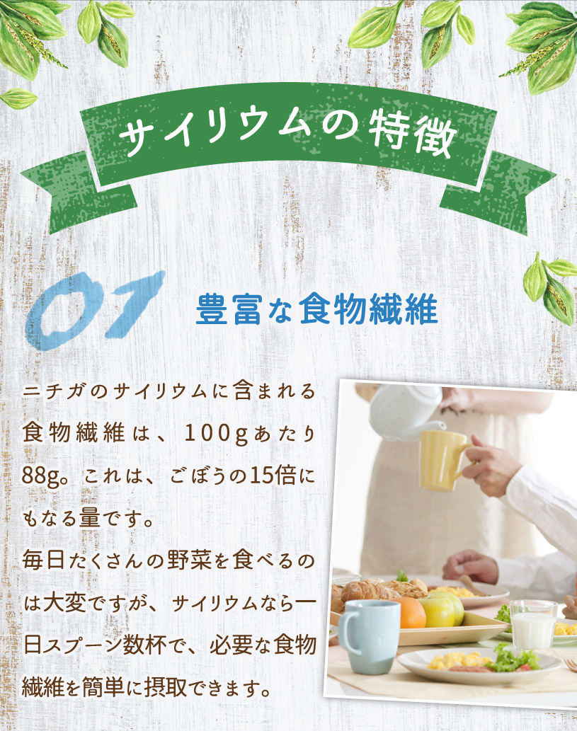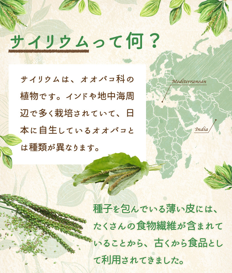 | 原材料名 | サイリウム種皮(国内製造) |