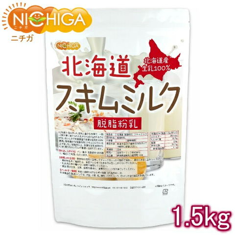 北海道 脱脂粉乳 スキムミルク 1.5kg【送料無料(沖縄を除く)】 北海道産 生乳100% NICHIGA(ニチガ) TK0