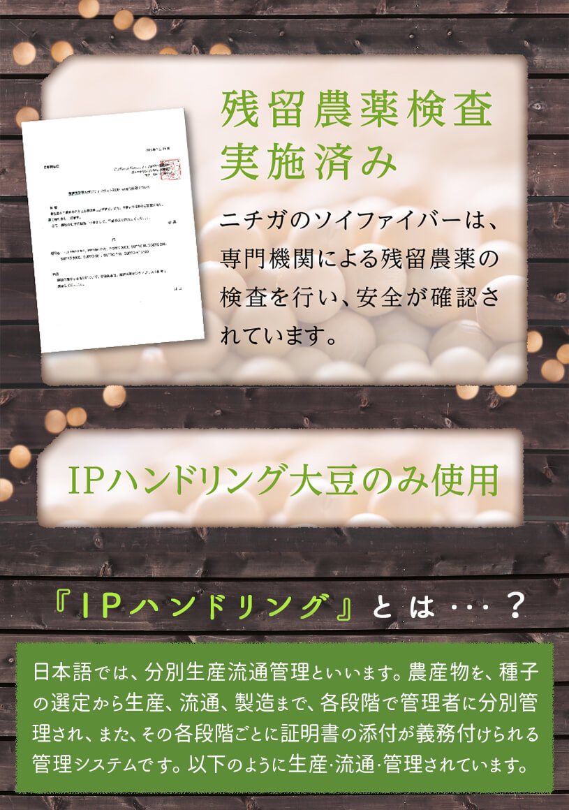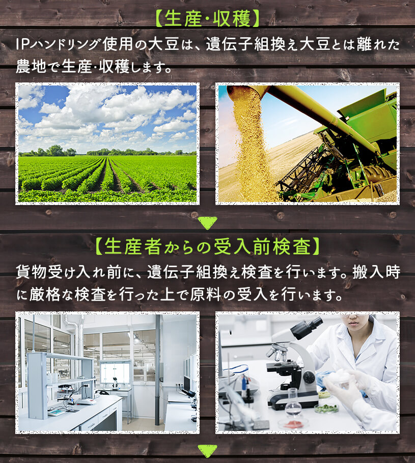 使用大豆は、IP管理(分別生産流通管理)を使用しております。