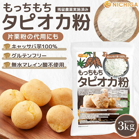 もっちもち タピオカ粉 3kg【送料無料(沖縄を除く)】 キャッサバ芋100% もちもちの素 ポンデケージョ わらび餅 製菓材料 NICHIGA(ニチガ) TK1