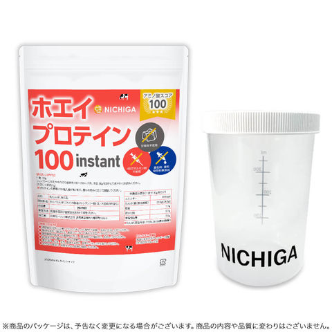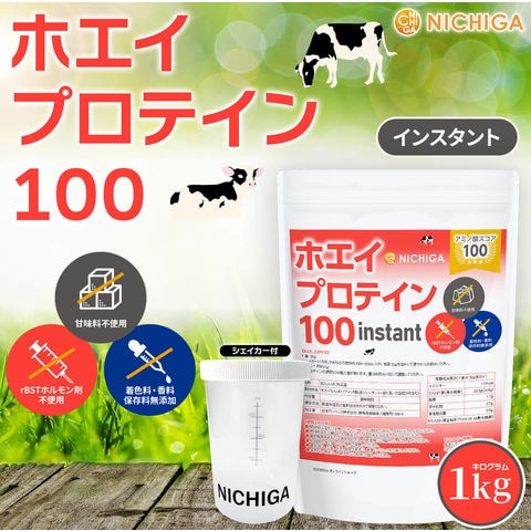<シェイカー セット> ホエイプロテイン100 【instant】 1kg 【送料無料!(沖縄を除く)】プレーン味 rBST (牛成長ホルモン剤不使用) WPC 溶けやすい造粒品 NICHIGA(ニチガ) TK1