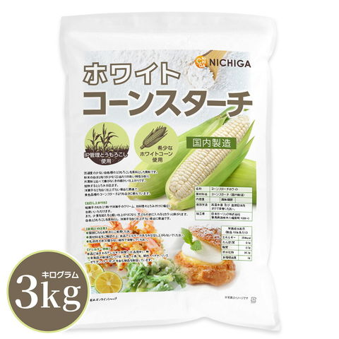 ホワイトコーンスターチ(国内製造) 3kg 【送料無料(沖縄を除く)】IP管理とうもろこし使用 希少なホワイトコーン お菓子作り とろみ 揚げ物 [02] NICHIGA(ニチガ)