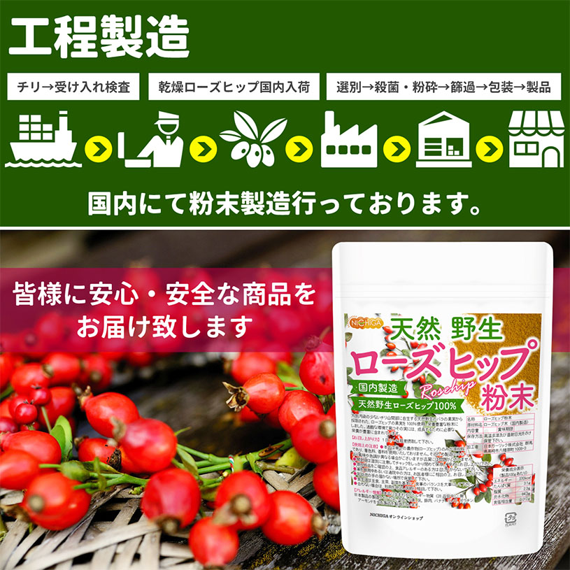 【天然 野生ローズヒップ粉末 天然野生ローズヒップ100%使用 国内製造】