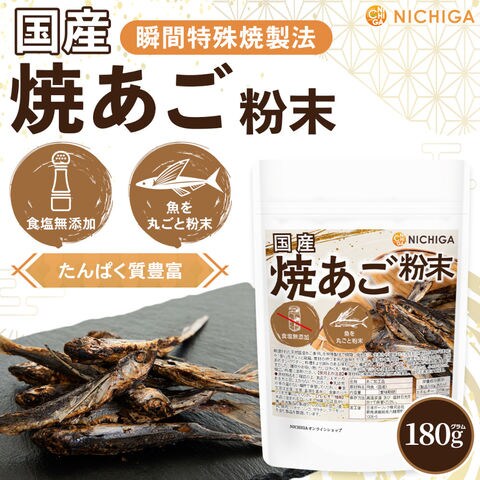 国産 焼あご粉末 180g 【送料無料】【メール便で郵便ポストにお届け】【代引不可】【時間指定不可】 瞬間特殊焼製法 魚を丸ごと粉末 食塩無添加 うま味と香りをギュッと凝縮 [05] NICHIGA(ニチガ)