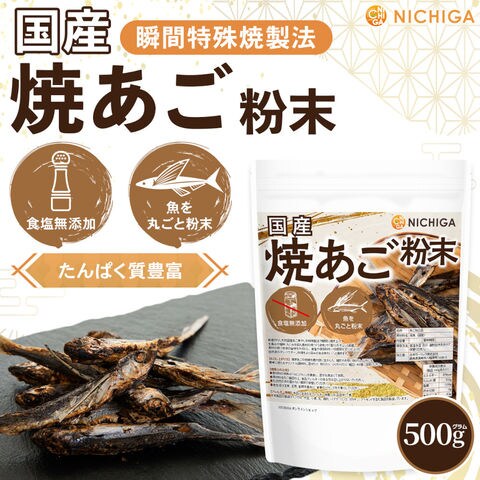 国産 焼あご粉末 500g 【送料無料】【メール便で郵便ポストにお届け】【代引不可】【時間指定不可】 瞬間特殊焼製法 魚を丸ごと粉末 食塩無添加 うま味と香りをギュッと凝縮 [05] NICHIGA(ニチガ)