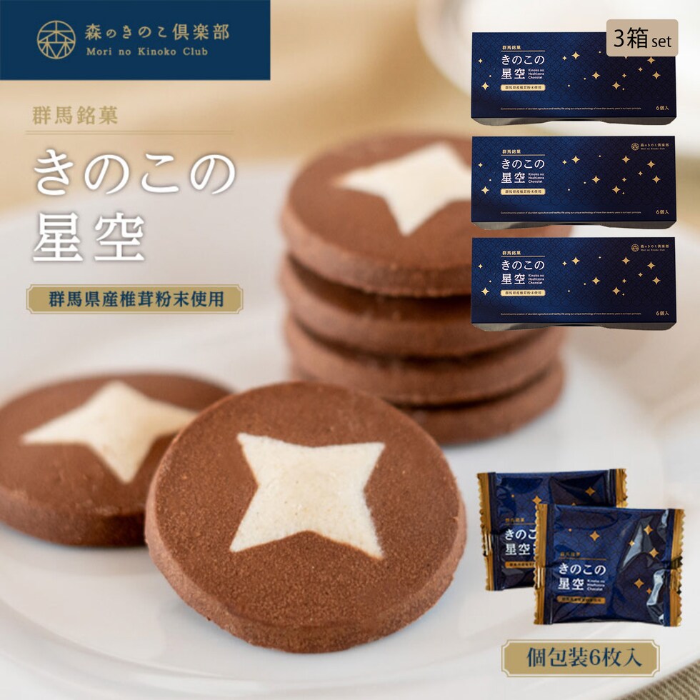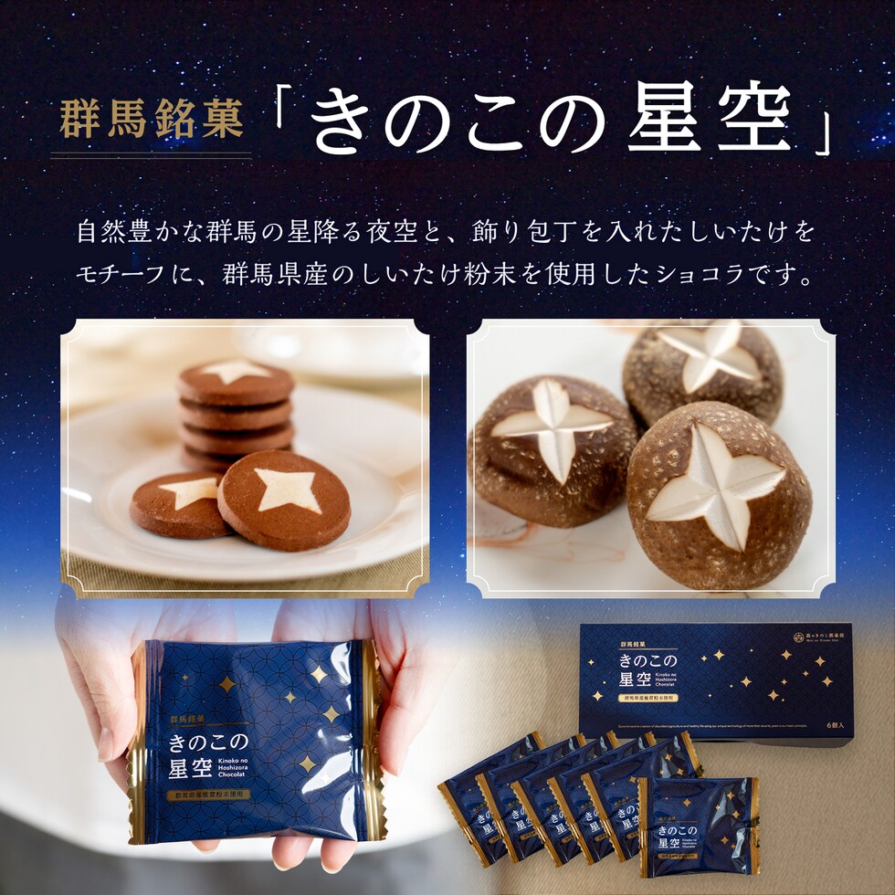 「きのこの星空」 ショコラクッキー 6枚入り | きのこ しいたけ 椎茸 シイタケ ショコラ チョコレート ギフト 個包装 おしゃれ クッキー チョコレートギフト クッキーギフト プチギフト お菓子 焼き菓子 スイーツ お返し 手土産 群馬銘菓 お土産 青柳