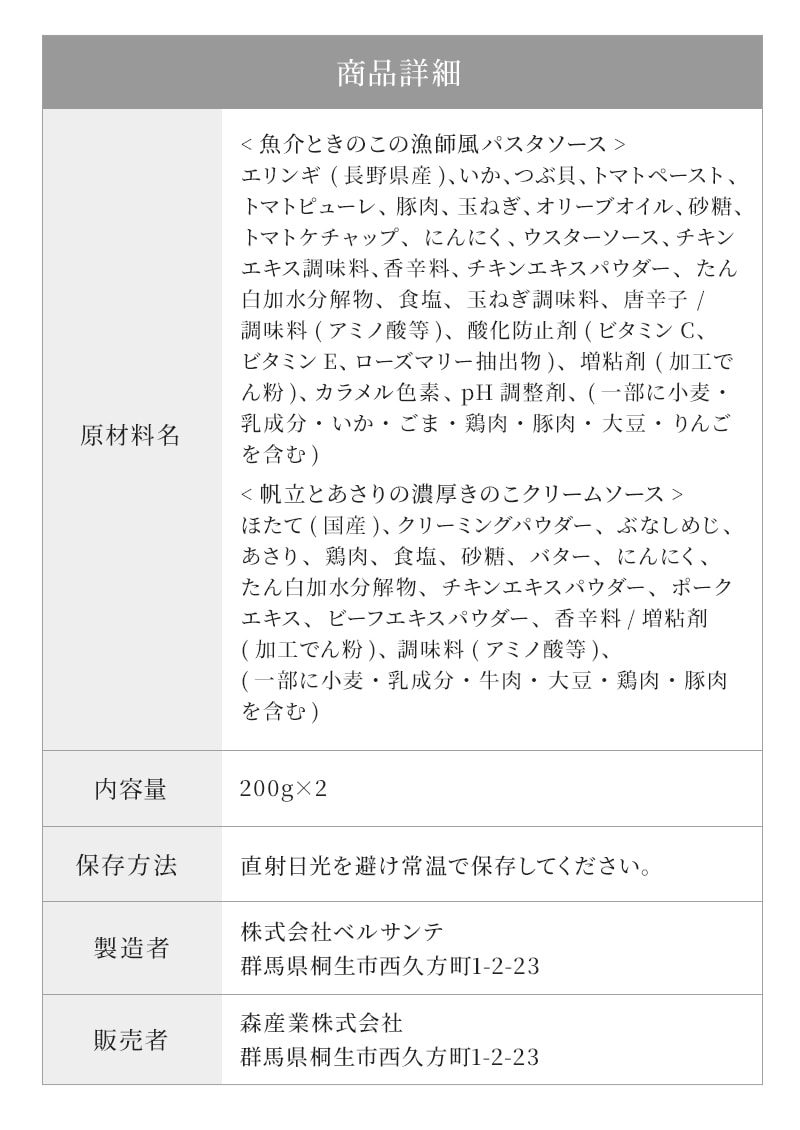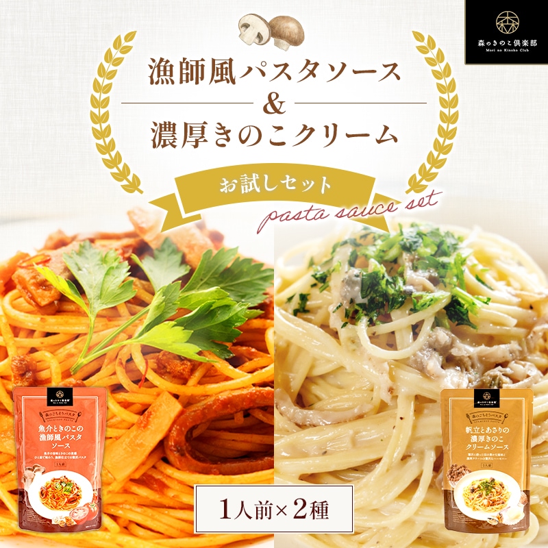 森のごちそうパスタソース お試しセット【1人前×2種類】送料無料 | 海鮮 きのこパスタ レトルト エリンギ つぶ貝 イカ 辛い ピリ辛 海鮮 ぶなしめじ あさり ホタテ 帆立