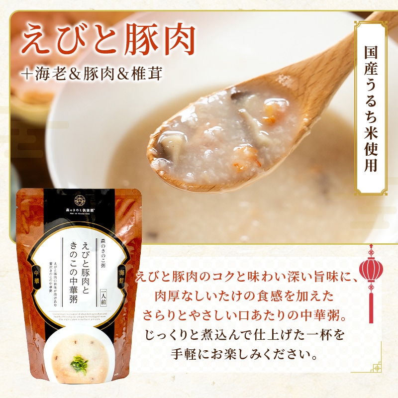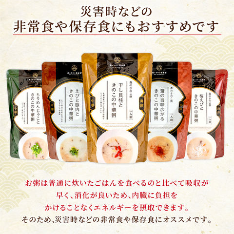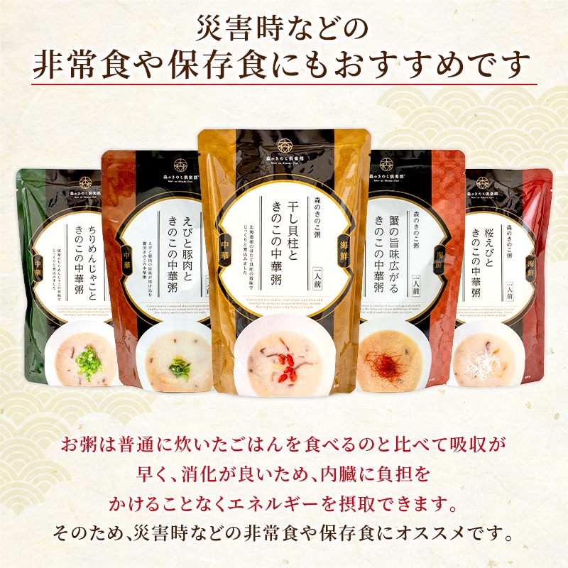 きのこ中華粥 お試しセット【1人前×5種類】国産きのこのこだわり海鮮中華粥 森のきのこ粥 送料無料 | 1人前 300g おかゆ お粥 レトルト 国産うるち米 ちりめん じゃこ 帆立 ホタテ 貝柱 椎茸 しいたけ きくらげ きのこ 簡単調理 国産米 高級 非常食 中華 粥 食べ比べセット