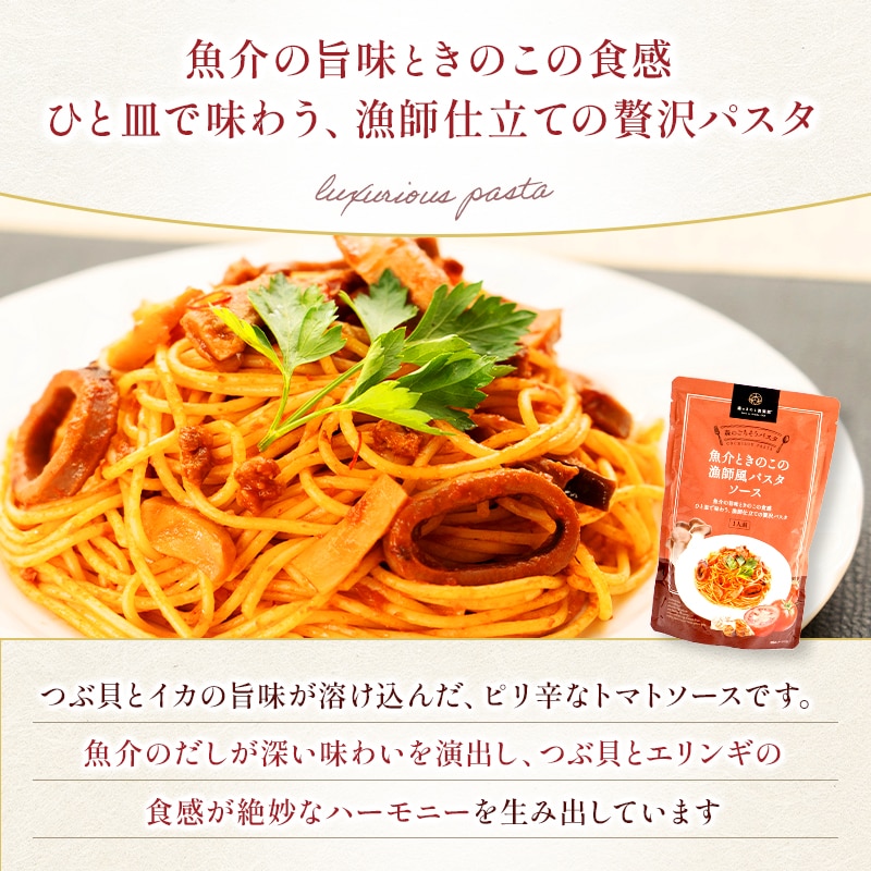 魚介ときのこの漁師風パスタソース 森のごちそうパスタ【1人前×3食】 | スパゲティソース 海鮮 きのこパスタ きのこスパゲティ レトルト エリンギ つぶ貝 イカ 辛い パスタソース スパゲッティソース レトルトパスタソース ピリ辛 簡単調理