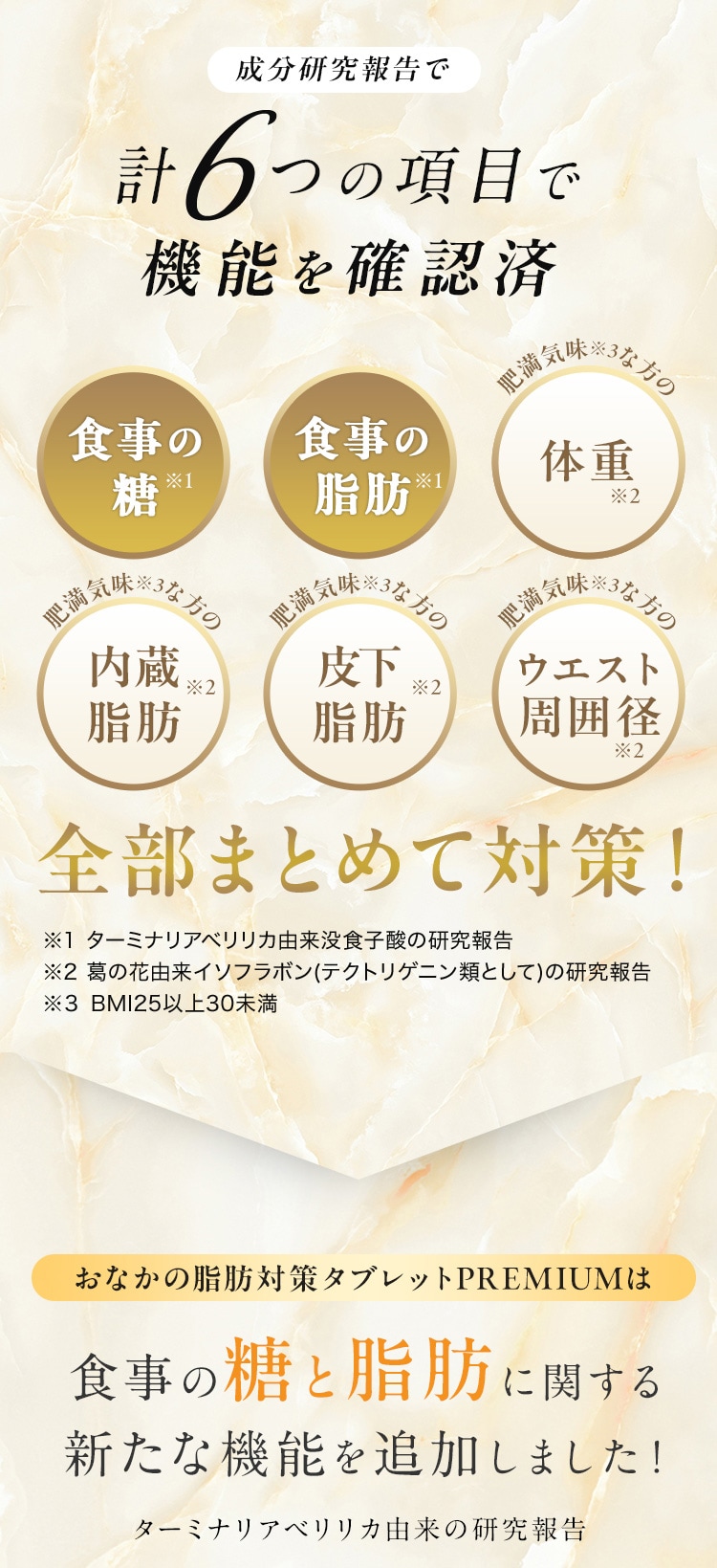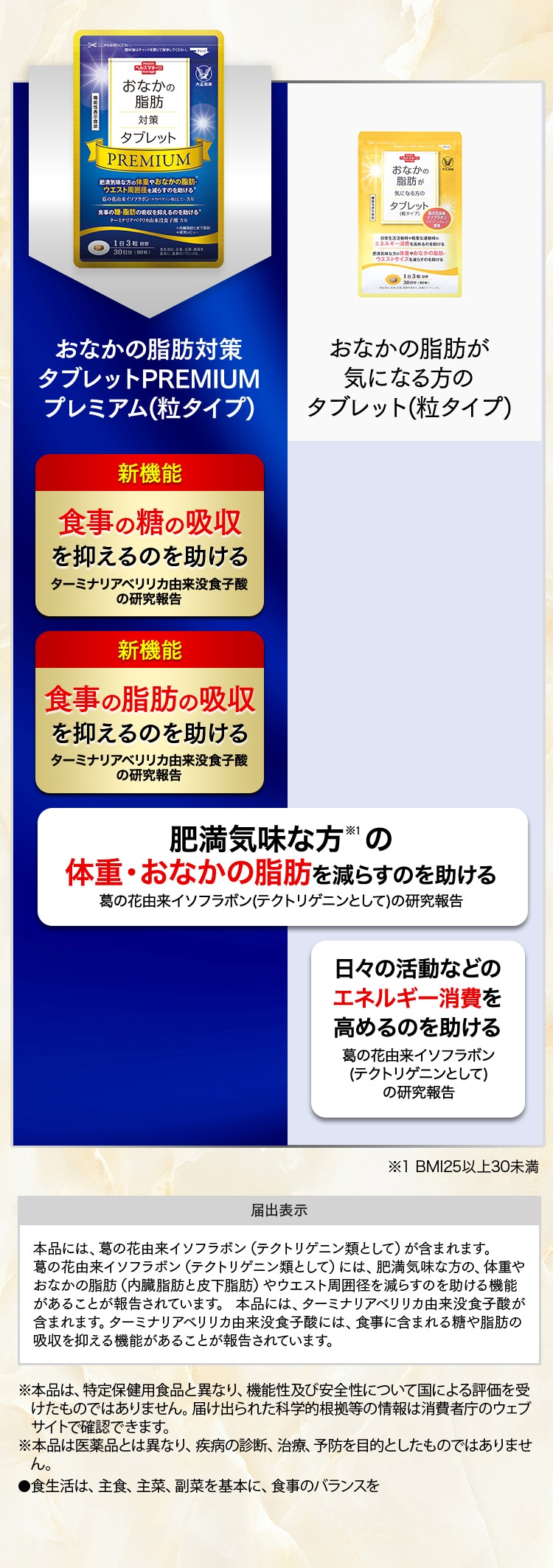 | 販売名 | おなかの脂肪対策タブレットPREMIUM(粒タイプ) |