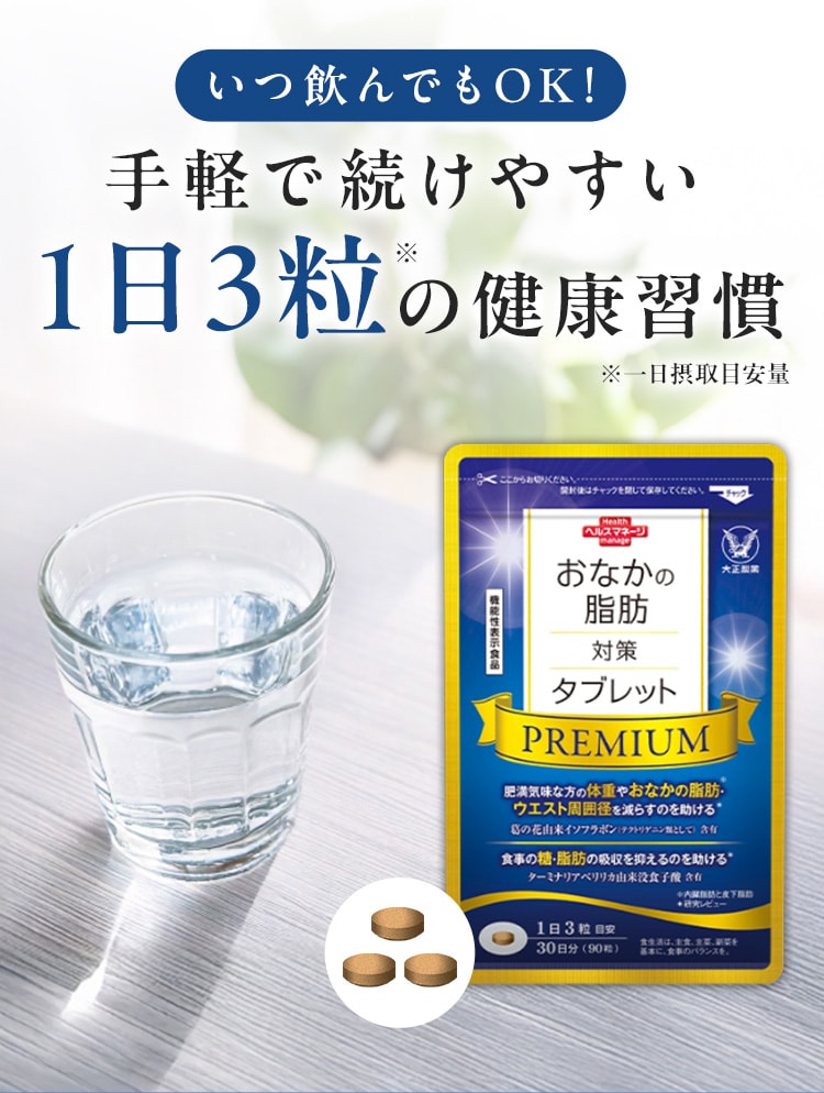 【公式】おなかの脂肪対策タブレットPREMIUM(粒タイプ)90粒×3袋