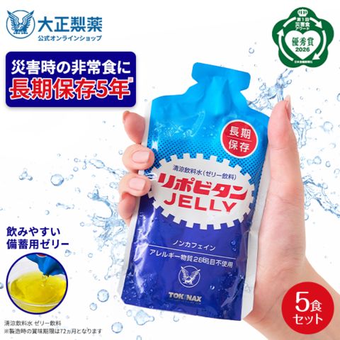 【公式】大正製薬 非常用 リポビタンゼリー 長期保存用 100g×5袋 非常食 防災食 保存食 防災食品 防災 備蓄 長期保存 5年保存 災害 地震 疲労回復 ゼリー飲料