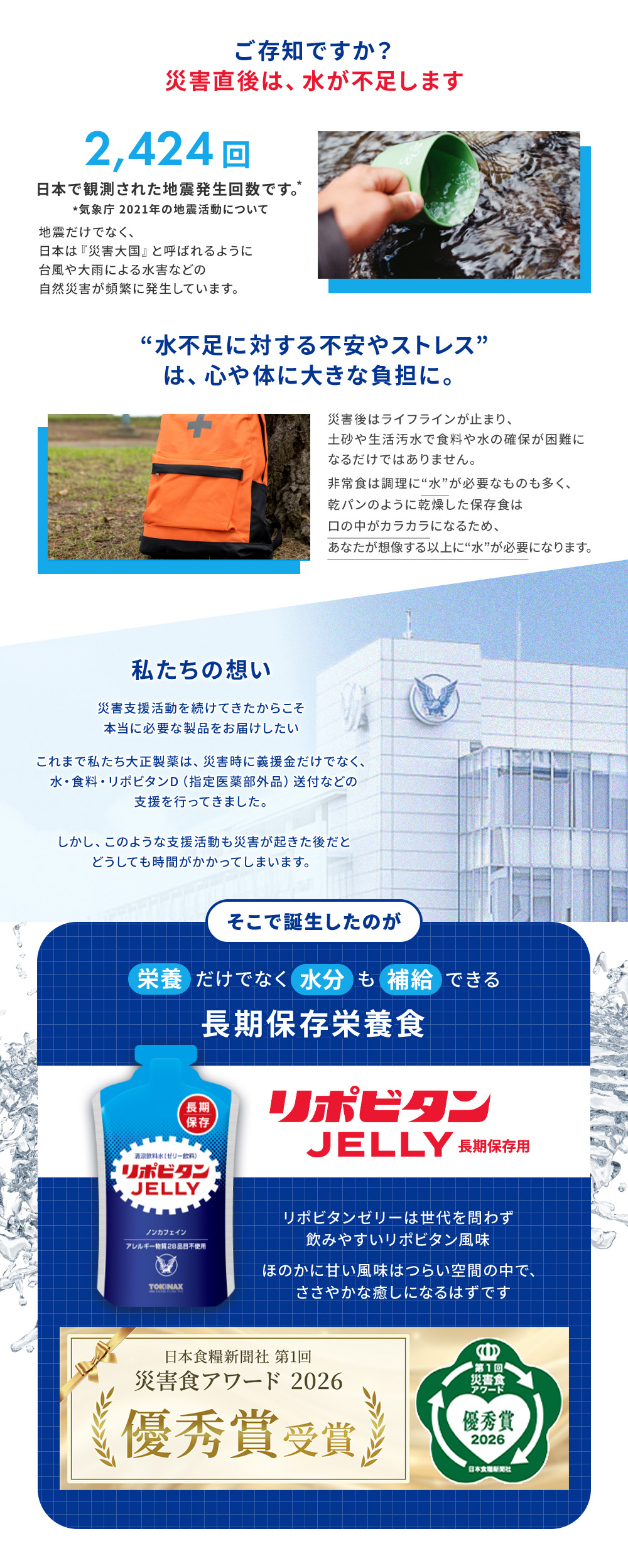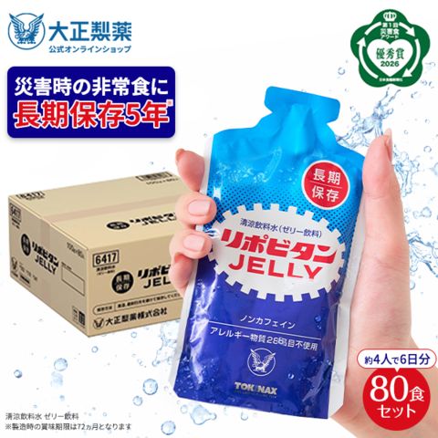 【公式】大正製薬 非常用 リポビタンゼリー 長期保存用 100g×80袋 非常食 防災食 保存食 防災食品 防災 備蓄 長期保存 5年保存 災害 地震 疲労回復 ゼリー飲料