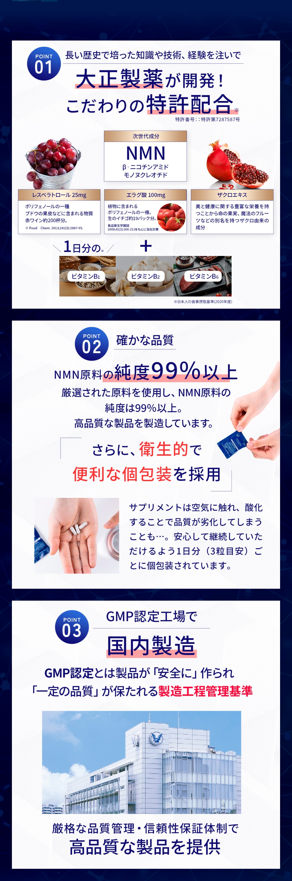 【公式】 大正製薬 NMN taisho 1袋3粒×30袋 90カプセル サプリメント カプセル エラグ酸 サプリ レスベラトロール ザクロ ビタミンb群 個包装 日本製 ビタミンb 健康食品 ビタミン nmn高純度99% 持ち運び 携帯 美容 健康