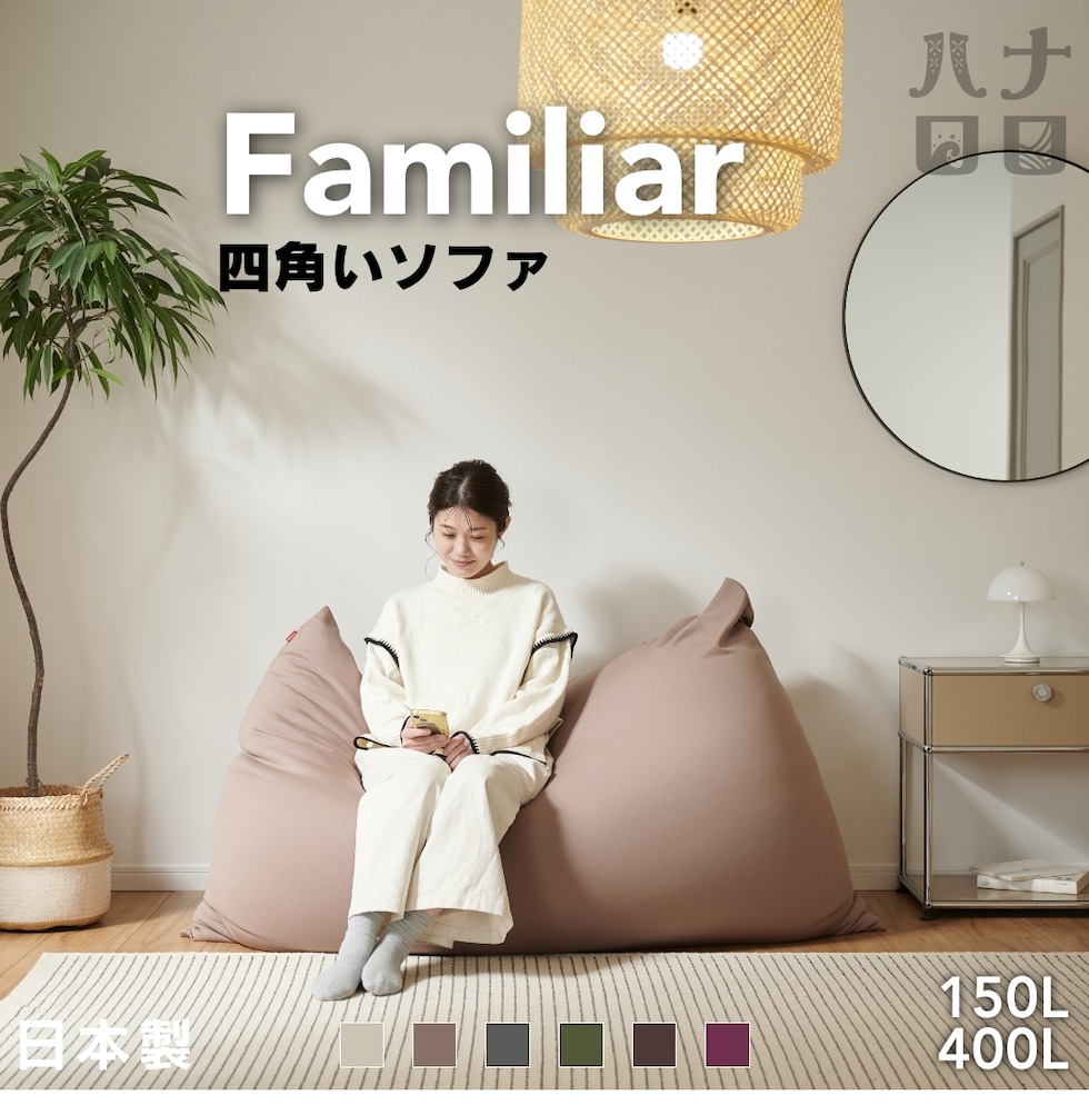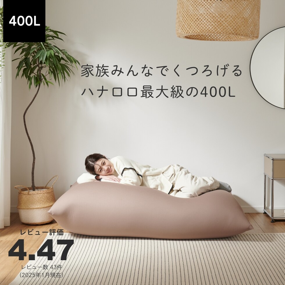 ハナロロ ビーズクッション【ファミリア400L ニットカバーセット】 人をダメにするクッション 日本製 補充可能 ナチュラルベージュ