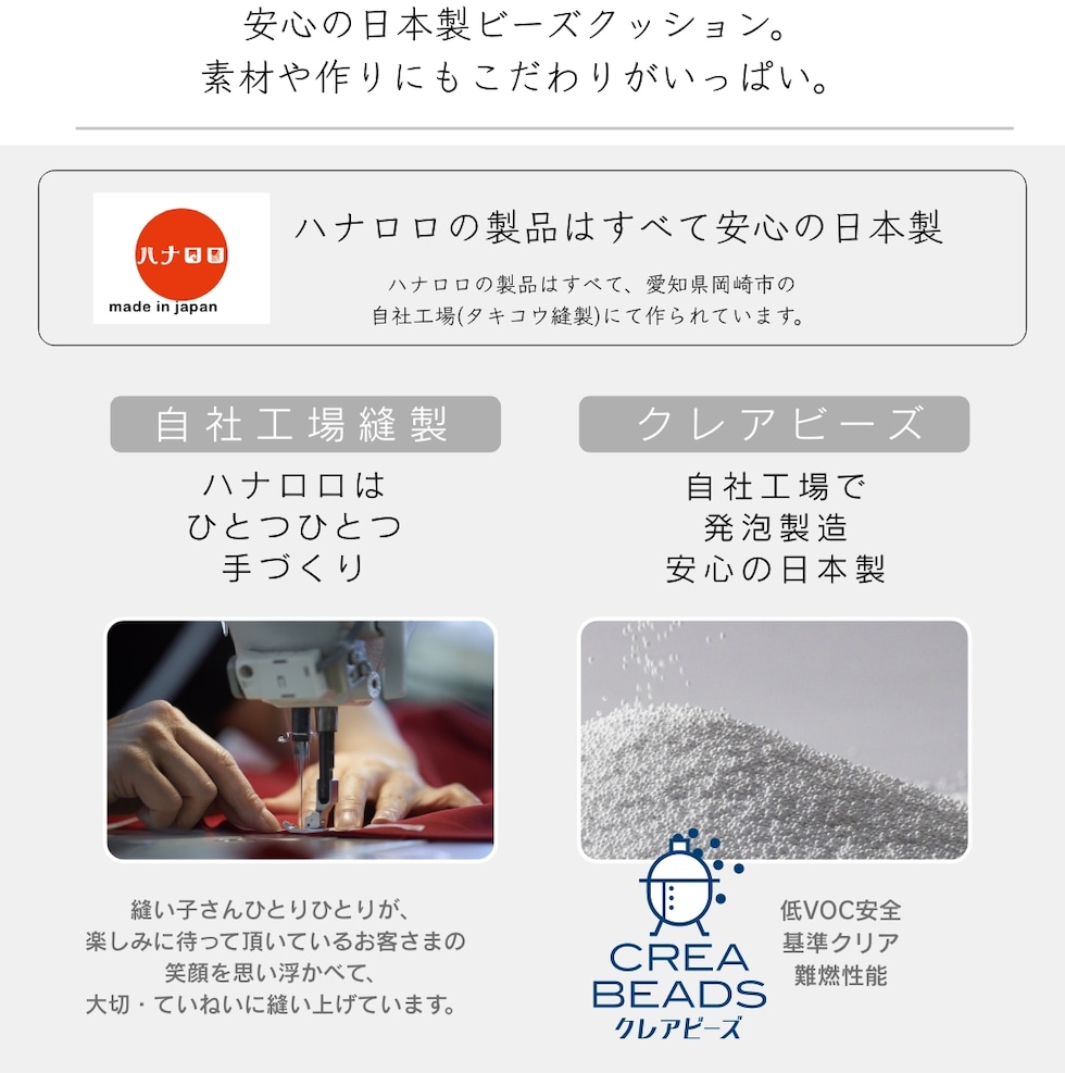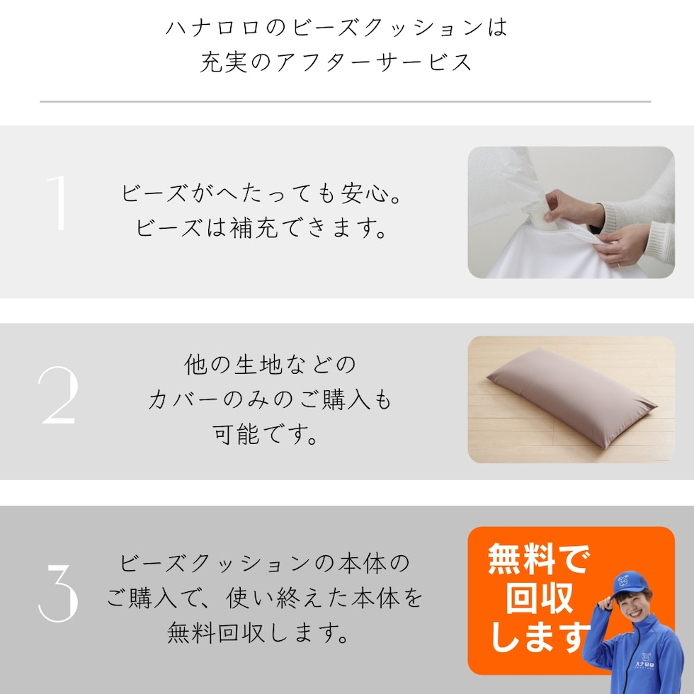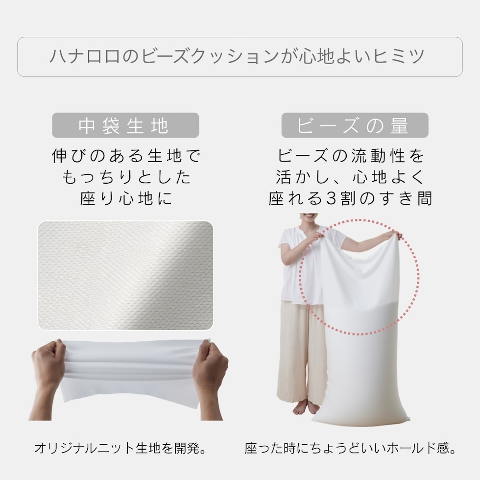 ■ ハナロロ ビーズクッションは、ビーズの補充やカバーの洗濯ができるので清潔に長くご使用して頂けます。
