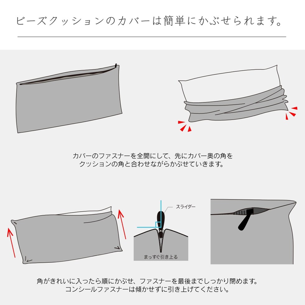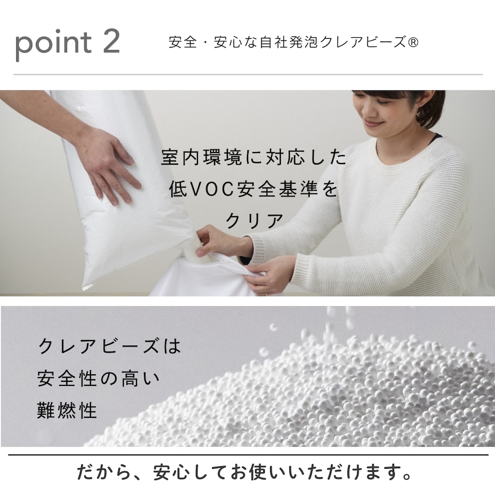 ■クレアビーズ充填可能です。ビーズクッションが硬く感じる時は、中のビーズを少し抜いてご使用ください。