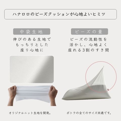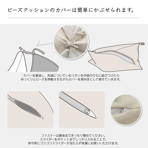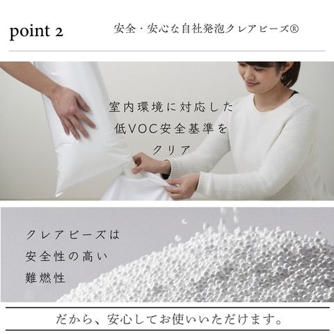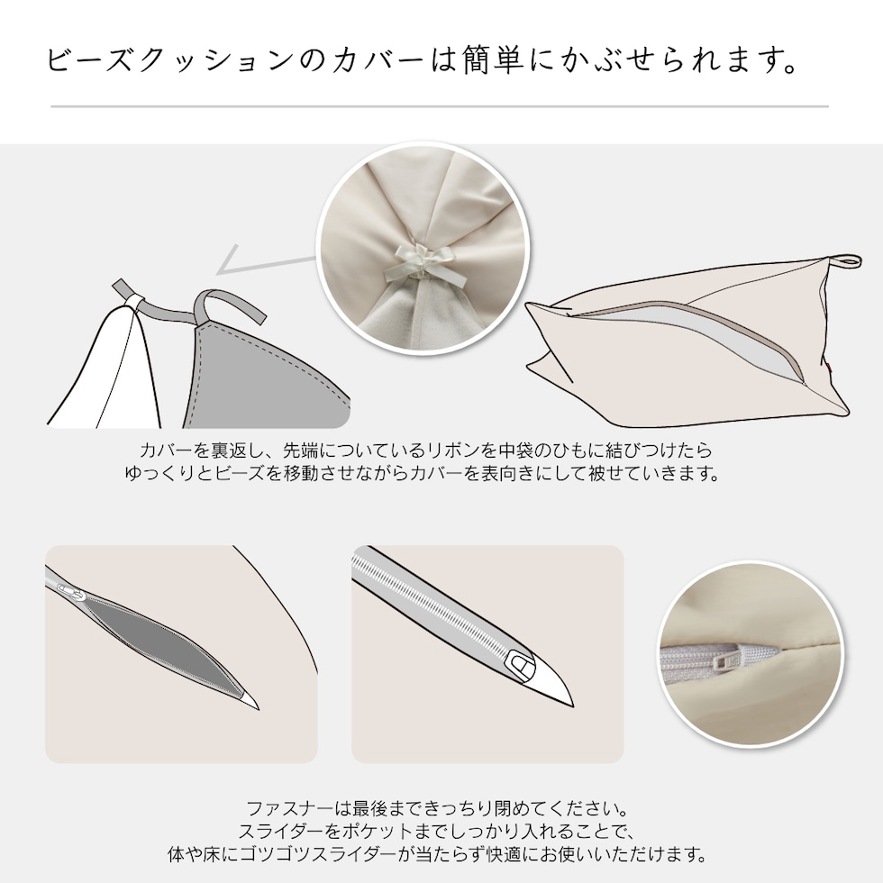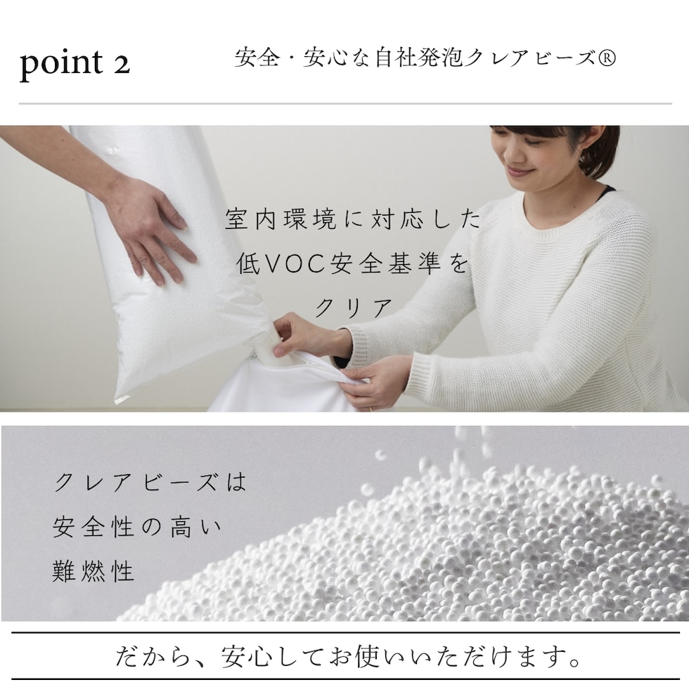■クレアビーズ充填可能です。ビーズクッションが硬く感じる時は、中のビーズを少し抜いてご使用ください。