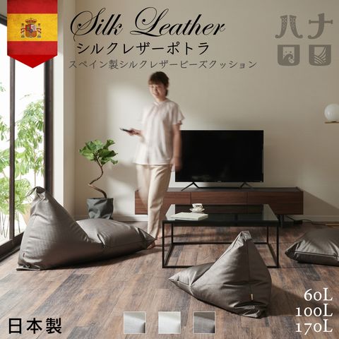 ハナロロ ビーズクッション【ポトラクッション100L シルクレザーセット】 合皮レザー 日本製 シルキーブラウン