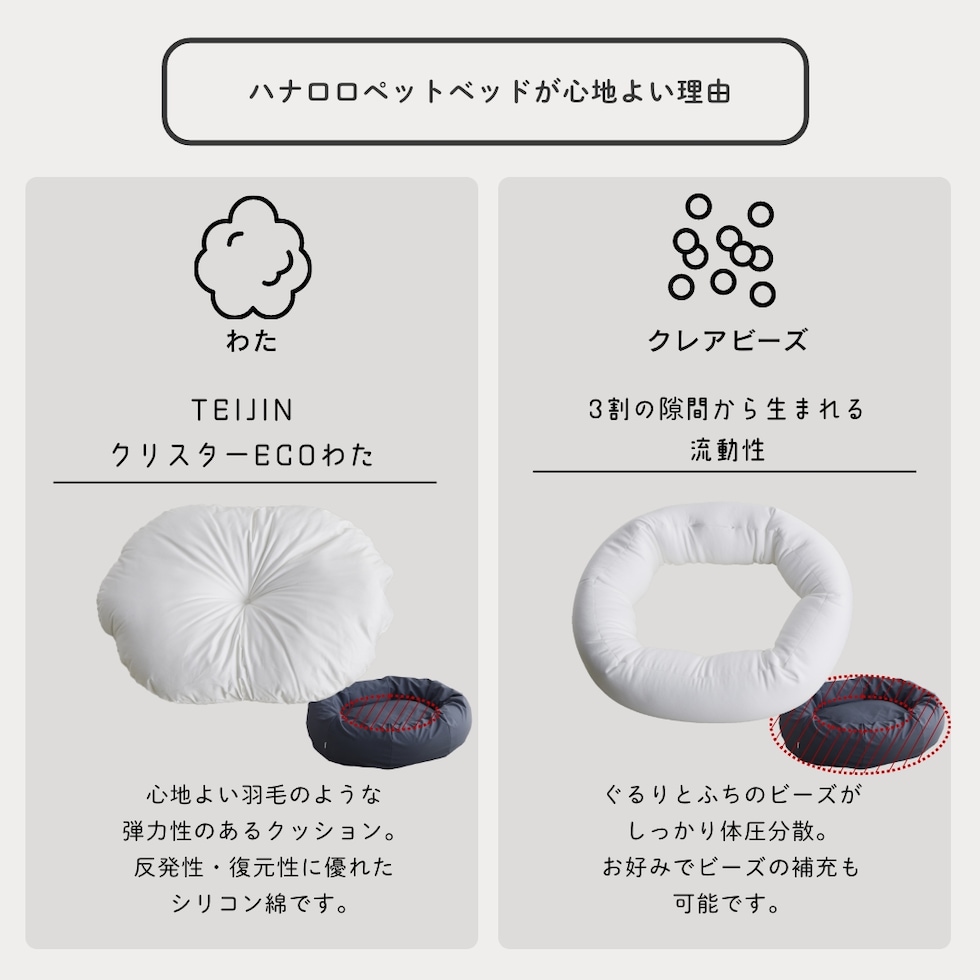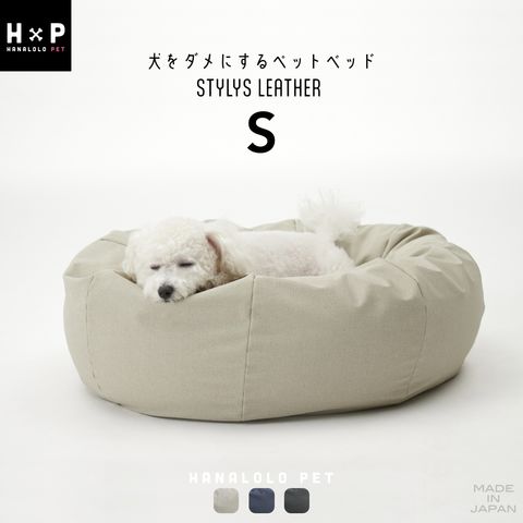 ペットベット【スタイリスレザーカバー S】ハナロロ 合皮レザー クッション 補充可能 日本製 グレージュネイビー