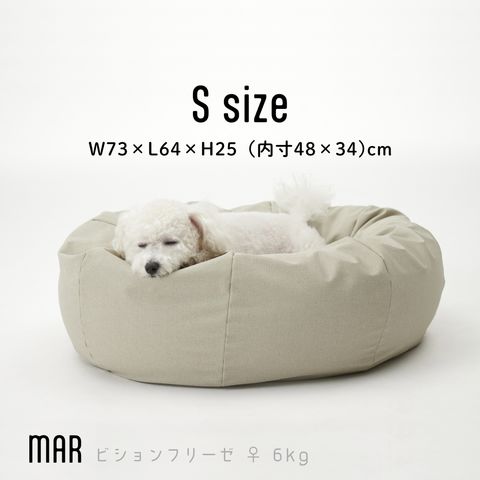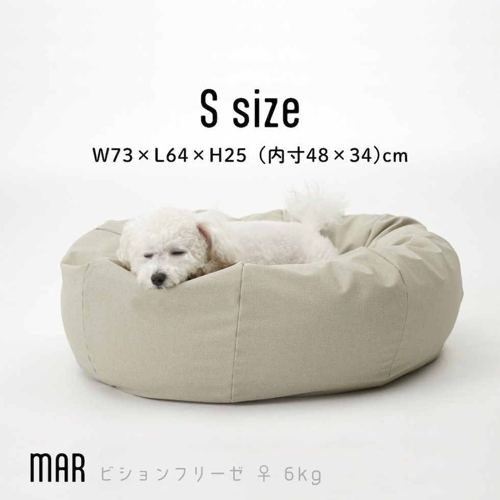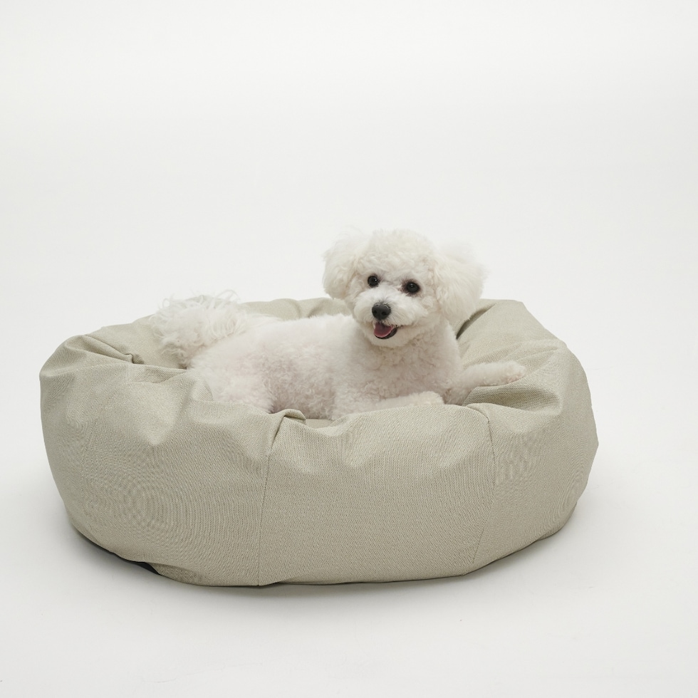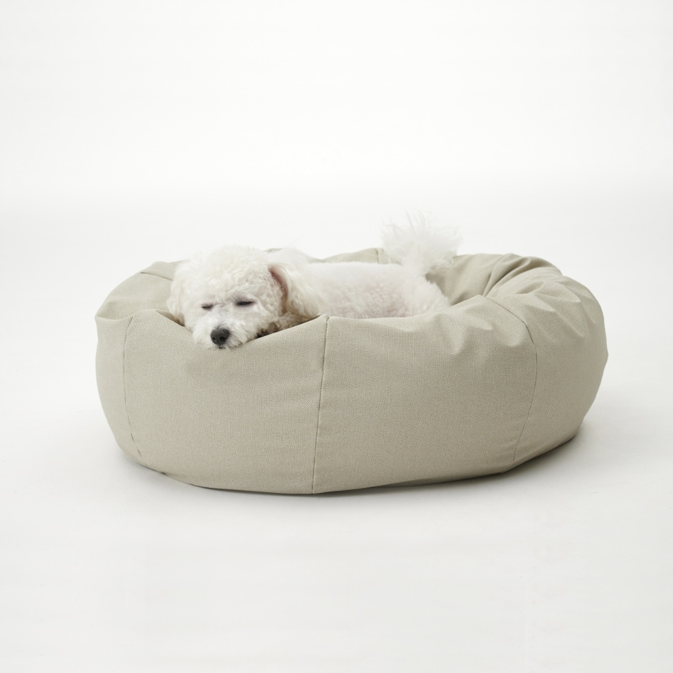 ワンちゃんが、ビーズ部分に顎をのせて、気持ち良くうたた寝できるように考えられたペットベッド。