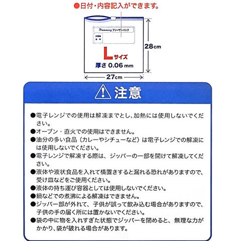 | 材質 | ポリエチレン ジッパー部つまみ/ポリプロピレン |