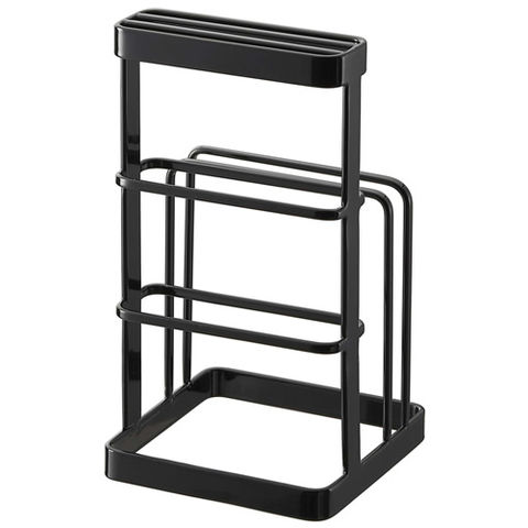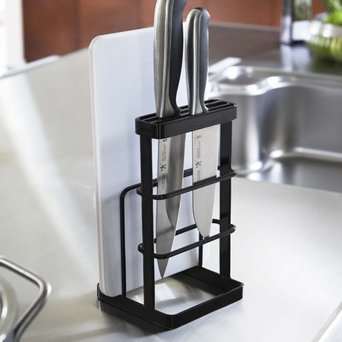 山崎実業 tower タワー カッティングボード & ナイフスタンド ブラック 6776 | 包丁差し まな板たて コンパクト シンプル 包丁たて 収納 おしゃれ まな板スタンド
