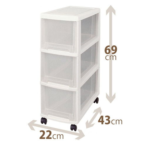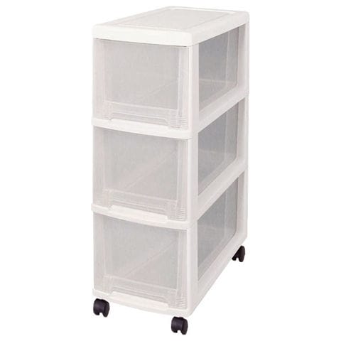 キッチン収納 キッチンスリムストッカー3段 ホワイト | 収納ケース 移動 キャスター