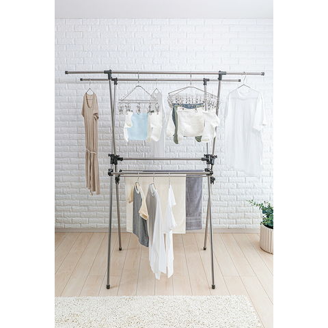 干し部が2段×両面の4箇所ある大容量タイプの室内用物干しスタンド。